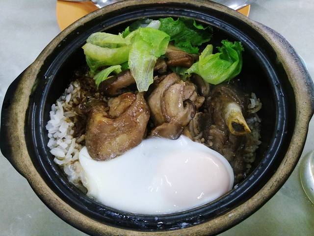 ▲沙煲鸡饭,主食是糯米饭,配以大块的鸡肉和三、四分熟的水煮蛋,同样是茶室的招牌之一。