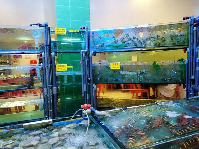 这家餐厅火爆的原因一个是价格亲民,另一个很重要的原因是食材新鲜,每一种海鲜产品都可以直接看着点。