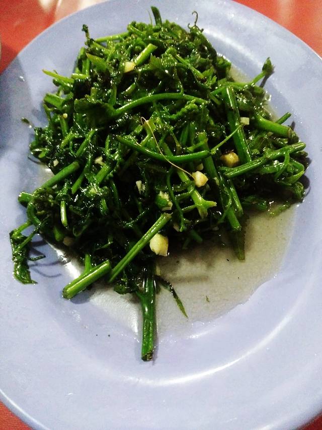▲随餐赠送的蒜蓉树仔菜……沙巴特色鲜蔬,味道还行……