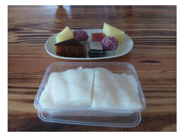 伦教糕卖相也是挺讨喜的,像个小白胖子,咬了一口,口感绵软,微甜,其他的红枣糕,蜂巢糕,还有马蹄千层糕,都是甜甜的。据店员说,这里负责很多地方的伦教糕供应,看来口碑确实不错。