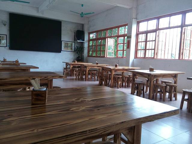 欢姐伦教糕的店面很大,里面装修也是挺古朴的,非常有年代感,一桌一椅,连同整体布局,都有上个世纪的感觉。