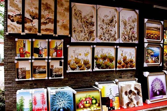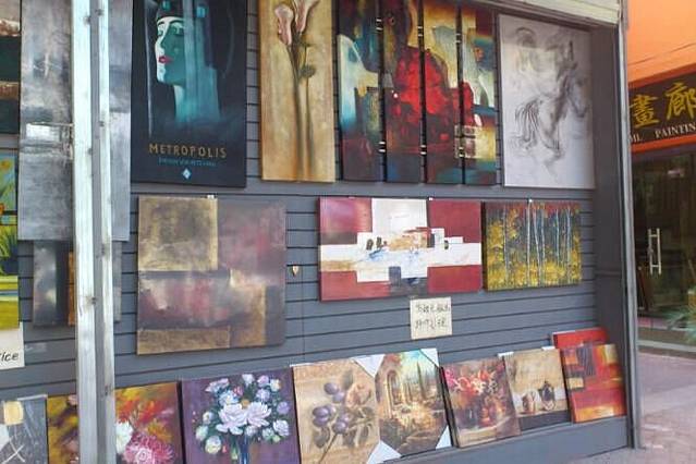 这是一条商业画廊街,其中必定有这么一群为了艺术和梦想,而在此安营扎寨的艺术家们。大芬给了艺术家们一个安身立命的地方,用颜料和画笔谱写一曲关于人生和理想的礼赞,曾经的他们,可能也遭遇过非议,一直被指指点点艺术只能用来点缀生命,而不能用来谋生,要生存,只能踏踏实实放下手中的画笔,卸下一身的孤高清傲,拿理想来生存,是痴心妄想,但是,在大芬,他们可以,一手执笔,两心相悦,三生有幸,引来四海知音。