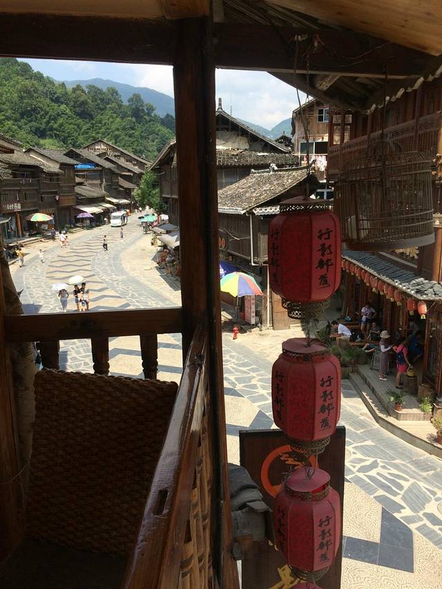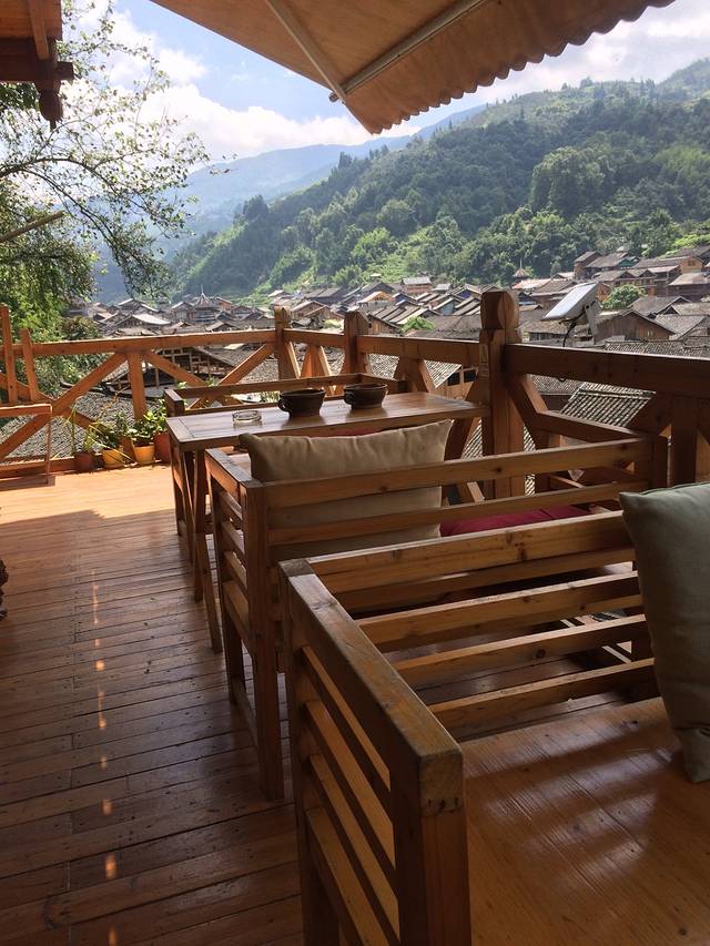 酒店叫溪山游旅,在山腰上。目测是寨子最高的酒店了,上来之后景观很好,但床垫不行,都凹进去了,一晚没睡好。😭