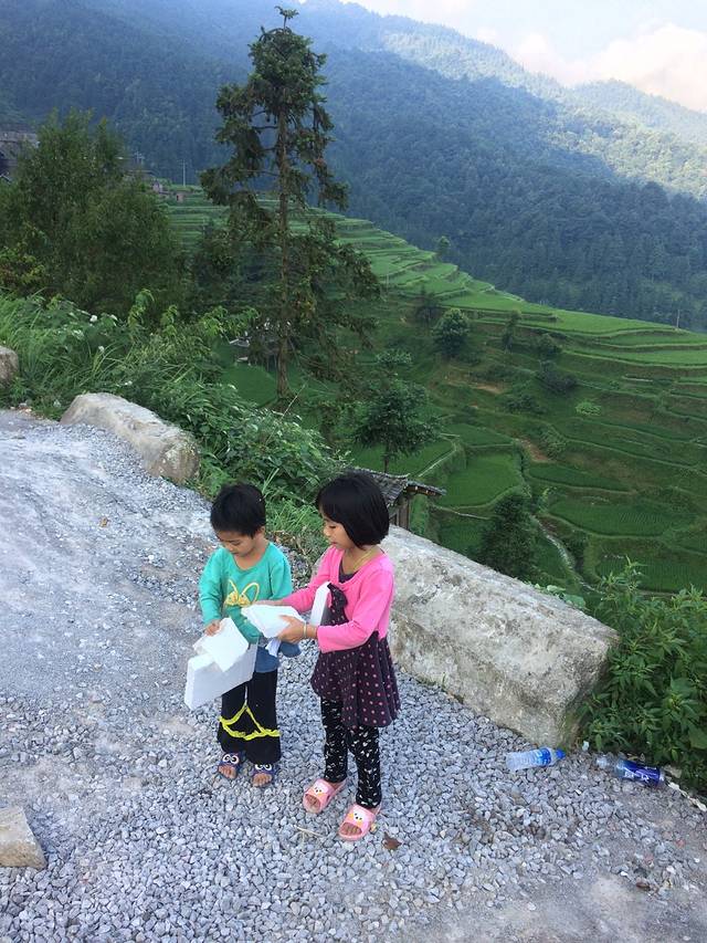 一下车,看见两个小妹妹就跟她们聊天,结果她们很积极主动的给我们唱起寨歌来了,别以为收钱,人家纯表演。😜她们说是老师教的。