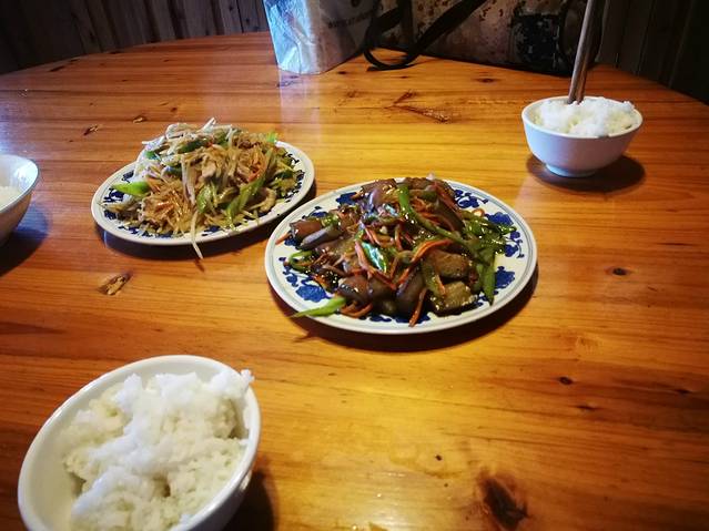 午餐在七星寨吃的,昨天给背行李的大叔做的,还好吧,两个人大概60多!
