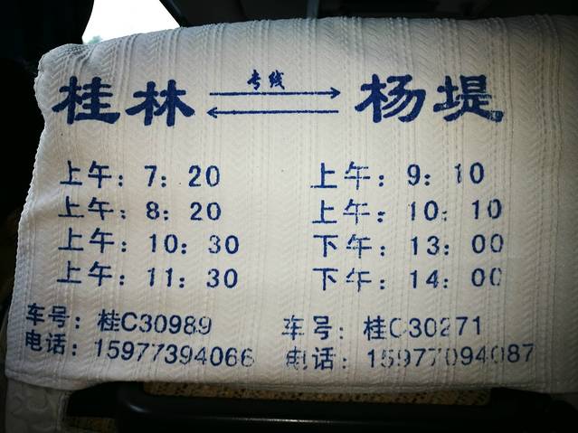 桂林到杨堤的时刻 仅供参考
