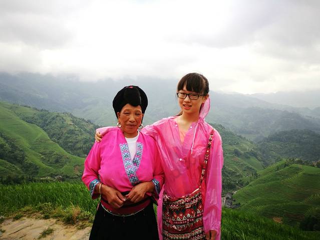 千层天梯观景点 我妹妹和瑶族阿姨