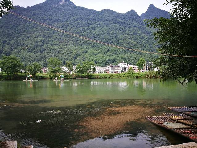 2、遇龙河漂流1个半小时是完全足够的,如果下小雨应该更美丽了,如果你觉得1个半不过瘾可以在给师傅一点点小费的~这个建议多给一点,毕竟是人工,不像漓江是电动的。人工优哉游哉的划着,静静的欣赏美景~