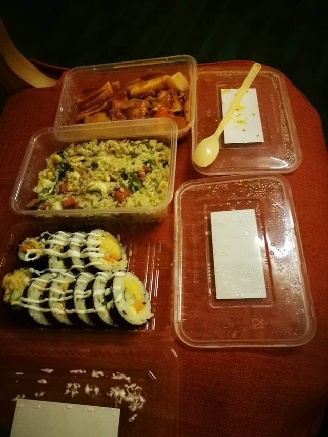 当晚的晚饭 美团外卖 累了一天窝在宾馆吃一顿饭感觉好好