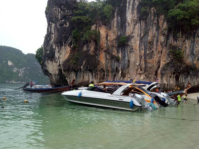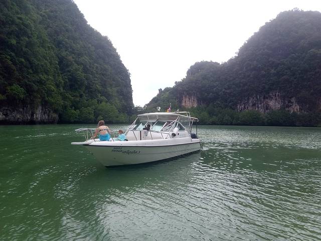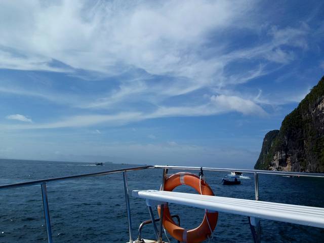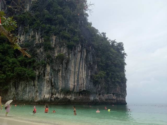 在奥南海滩的代理预定的HONG岛浮潜,大人700B,小孩300B,上岛费300B每个人,建议大家选择快艇,不要坐长尾船,快艇的好处就是不晕船,而且速度快。一共去四个岛四个景点,风景很不错,唯一要说的是在HONG岛以及泰国的很多岛喂鱼都是违法的,如被发现可能被罚款很重而且还要坐牢呢,所以不建议大家带面包喂鱼,切记男骆驼说的这一点。