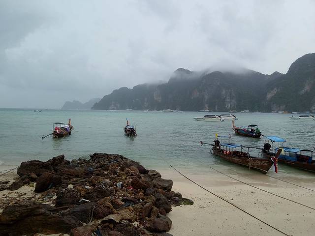 奥南海滩晚上的街道很漂亮,很多店都开着,卖服装和纪念品的都很多,也有特色餐馆。在奥南海滩的街边预订的皮皮岛的船票,350B每人,包含酒店的接客,第二天早晨准时有车子酒店接。我们两大一小去皮皮岛的船票一共是1000B。到皮皮岛要一个小时五十分钟,上岛的时候还要再付20B每人的上岛费。