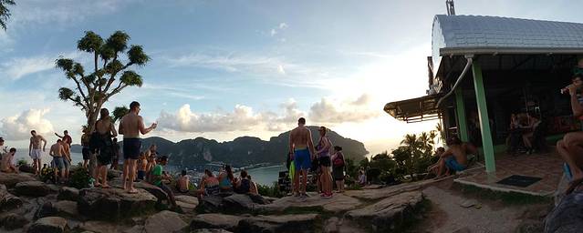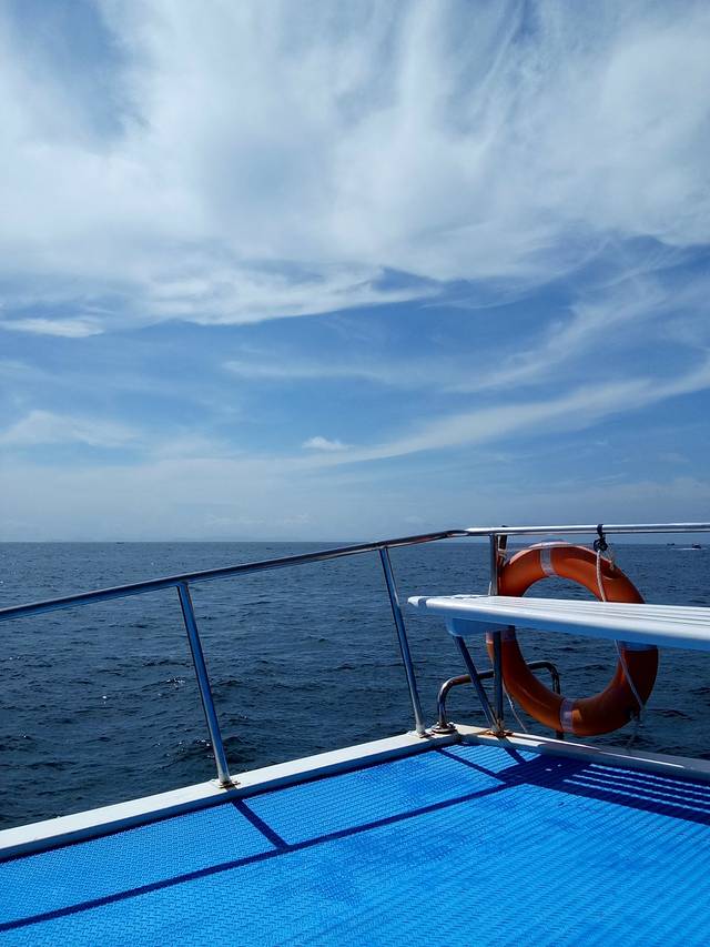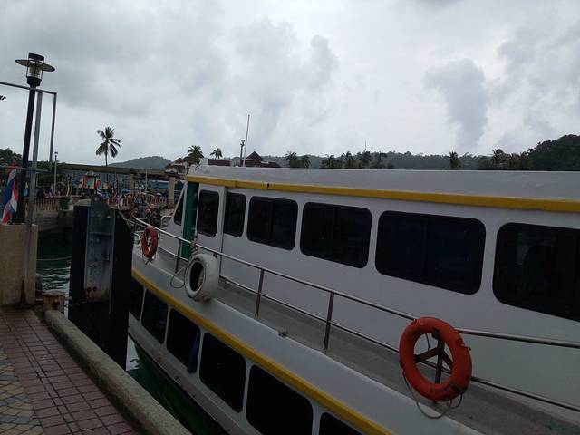 在上岛的长路上两边是各酒店接客人的工作人员,他们手里都拿着自家酒店的牌子,所以大家预定的话可以把酒店的名字单独的抄下来,以便找到这个工作人员,提前保存了酒店的名字一下子就找到了菩提别墅酒店接客的工作人员了,工作人员先拿出一张纸,上面有当天预订的客人的名字,我找到我的名字后,他做了标记然后给我一张A4纸的地图,地图是皮皮岛的,上面有酒店的位置。具体走法是走过长桥后在主路右拐直走,左手边就是,有明显的招牌,很好找。到达皮皮岛的当天有些雨,所以当天的行程是逛海边以及去山顶看皮皮岛全景和预订第二天的潜水。