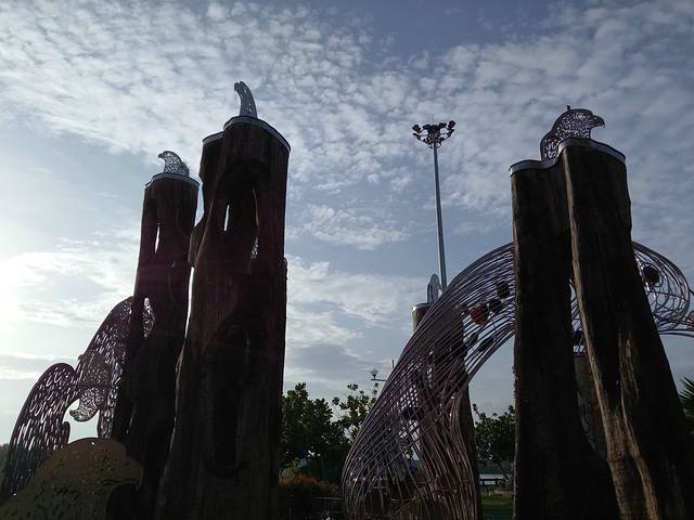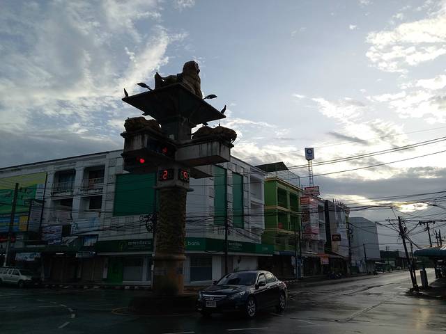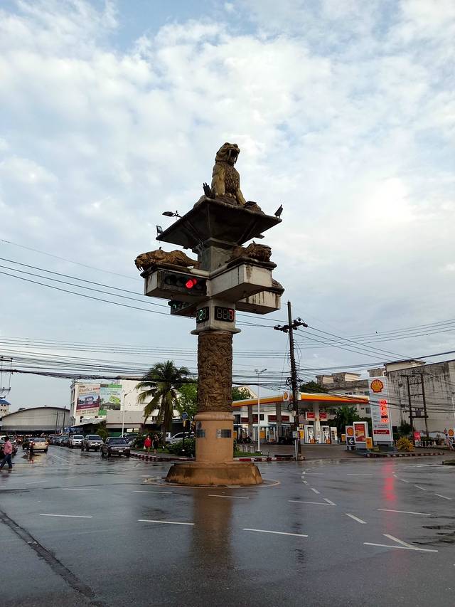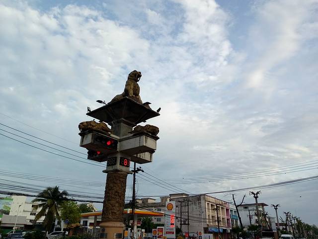 甲米早市吃过饭后,顺着早市前面往东走到河边,经过狮子路灯,大猩猩路灯在狮子路灯的右边,所以如果行程不再来甲米可以走去大猩猩路灯拍张照片。走到河边后会有一个大的广场,在广场可以看到大螃蟹的雕塑还有雄鹰的雕塑,这都是甲米镇的特色,而且那里风光也很好。