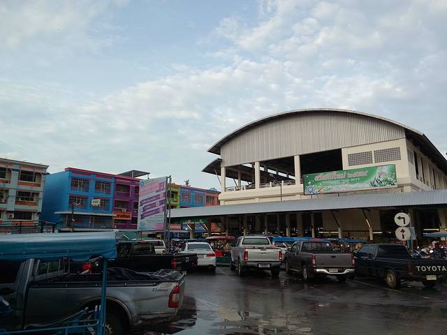 香港飞甲米,到甲米后是早晨的4:30,这一时间段班机的客流量很大,有很多旅行团也是落地签的,需要排队比较长时间。由于出发前办签证时间来不及了,所以是落地签,我在出发前就打印好了泰国落地签的申请表并且填好贴好照片,到甲米机场落地签那里直接给1200B一人,不到一分钟就办好了。所以大家去之前如果是落地签可以准备一些办理落地签的泰铢,每人1200B,其它愿意多带些可以带些人民币,入境后大厅里直接有货币兑换的,是5.13,比取款机普遍的5.06以及后面所有城市的货币兑换都高。由于到了甲米后,早晨行程是早市,所以提前在网上预订的接机,90人民币,直接送到甲米早市,到了目的地后可以给个20-100B小费。甲米早市的正确名字是叫:MAHARAJ MAKET。如果怕司机找不到,可以在手机里保存一下我下面的图片,都懂的。
