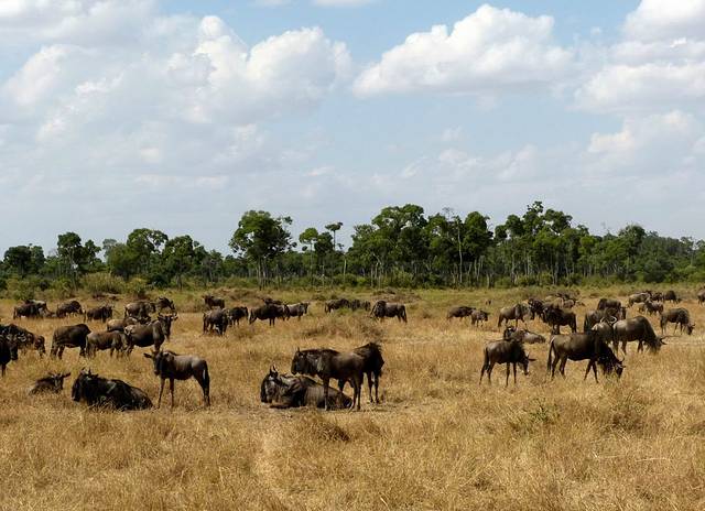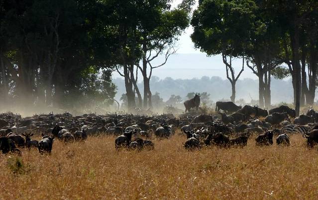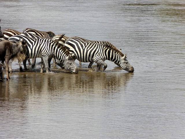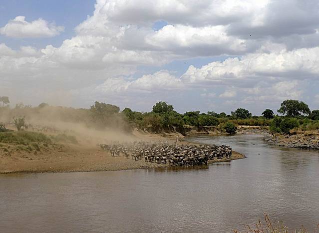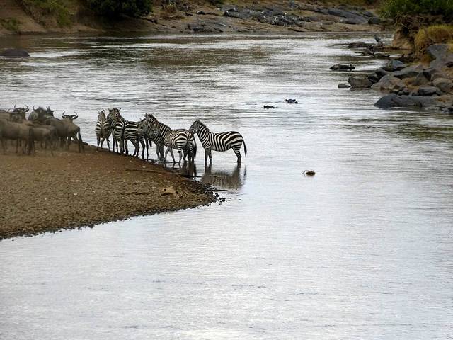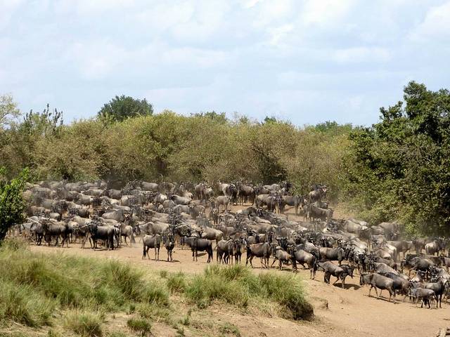 大群的角马和斑马从早上开始,就已经在马拉河畔集结。