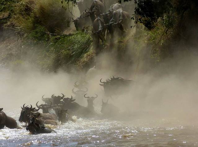 每年7月底,随着旱季的来临,数百万只角马、斑马、瞪羚等食草野生动物,就会组成一支迁徙大军,浩浩荡荡从非洲坦桑尼亚的赛伦盖蒂国家公园,向肯尼亚的马赛马拉国家自然保护区进发,寻找充足的水源和食物。这是一段3000公里的漫长旅程,途中不仅要穿越狮子、豹埋伏的草原,还要跨越布满鳄鱼、河马的马拉河,有大批的角马将死在路上,但同时也将有大批小角马在途中诞生。这是自然界最伟大的迁徙旅程,这也被誉为是世界上不容错过的7大自然奇迹之一。
