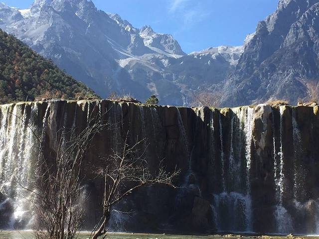 一道小瀑布,横亘雪山前。