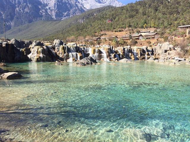 比想象中震撼太多,可以与九寨沟相媲美。近看水的颜色还分起了层,浅浅的翡翠色。