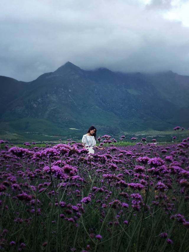 蓝月谷一带都是树林农田,一条公路笔直到底,车辆稀少。附近黏着好多小景点,刚好我们路过一个花田庄园,种满了薰衣草和雪菊。门票¥20/人。