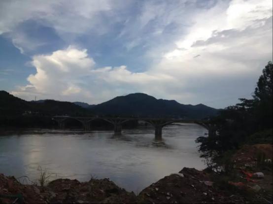朋友开着他的摩托着载着我驶过这镇上的最宏伟的桥—高陂桥,桥上看横跨的韩江,让我一个很少亲历海的人有种“面朝大海,春暖花开”的感受。浩浩荡荡的江水一路奔腾而去,不知从哪里来也不知往哪里去,江上有作业船“隆隆”地发出响声,远处还有一个渔民在收网。远处青山传来一两句鸟鸣,一路上的竹叶随风飘荡,心思也沉醉在这美丽的村镇景色之中。