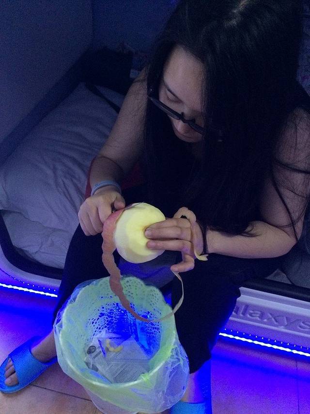 在小胶囊里醒来,听到淅淅沥沥的雨声,那就在小胶囊里打扑克吧,24岁的第一天,总要留点纪念的~太空舱门口有一面梵高星空的壁画,正和我意~