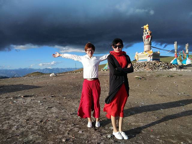 从塔尔寺出来还在一直下着小雨,樊姐说我们下一站是日月山,日月山是文成公主远嫁时在路上休息的地方,上边有两个亭子,一个日亭,一个月亭,日月山的下边还有条倒淌河,自东向西流,说是公主的眼泪,学渣只记住了这么多,哈哈哈哈哈,大姐看见一定要吐血了!