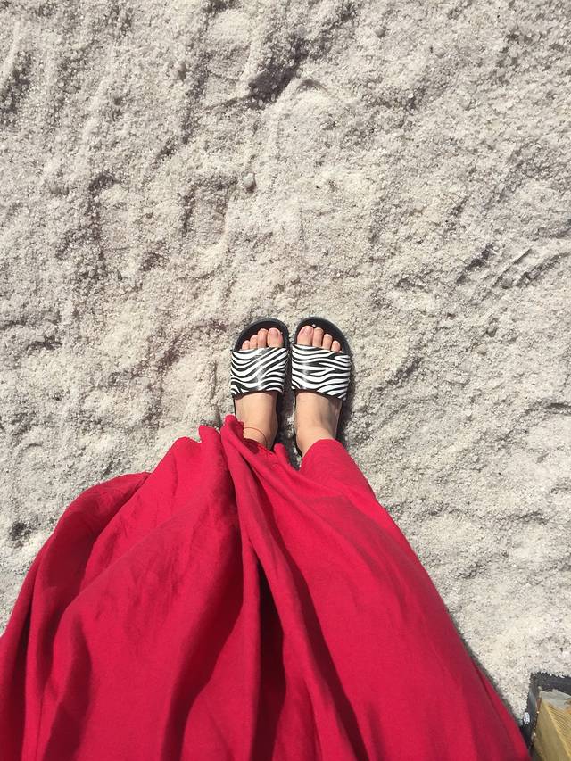 小火车人很多!宋健排队的时候我跑去照了一下天空之镜广场,真是美爆了!无法用语言形容!之后证明我还是很有先见之明的,从盐湖回来太晚了,就没再去天空之镜广场逛逛,幸亏之前跑去拍了几张照片!今天天气给力!唯一的一天晴天!盐湖配上大红裙!太美,从盐湖出来,感觉黑了十个色度!大热天的樊姐就一直在外面等我们!