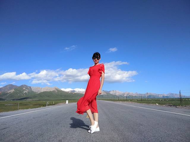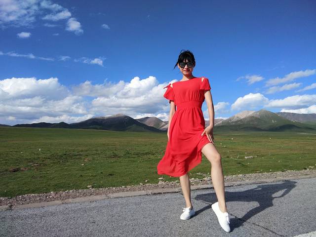 从茶卡盐湖出来已经中午了,大姐就一直在等着我们,之后很长一段时间都是盘山路,景色很壮阔,天空很蓝,白云,草原和山都是一片一片的,开车的时候大姐说,路上撞死一只羊就是一万,一头牛三万!千万小心!天气晴朗风景太美,大姐看到好看的景色就叫我们下车照相,还给我们买甜瓜吃!真的是我吃过最好吃的甜瓜,超级甜!