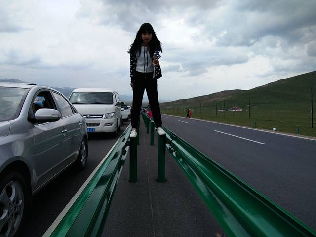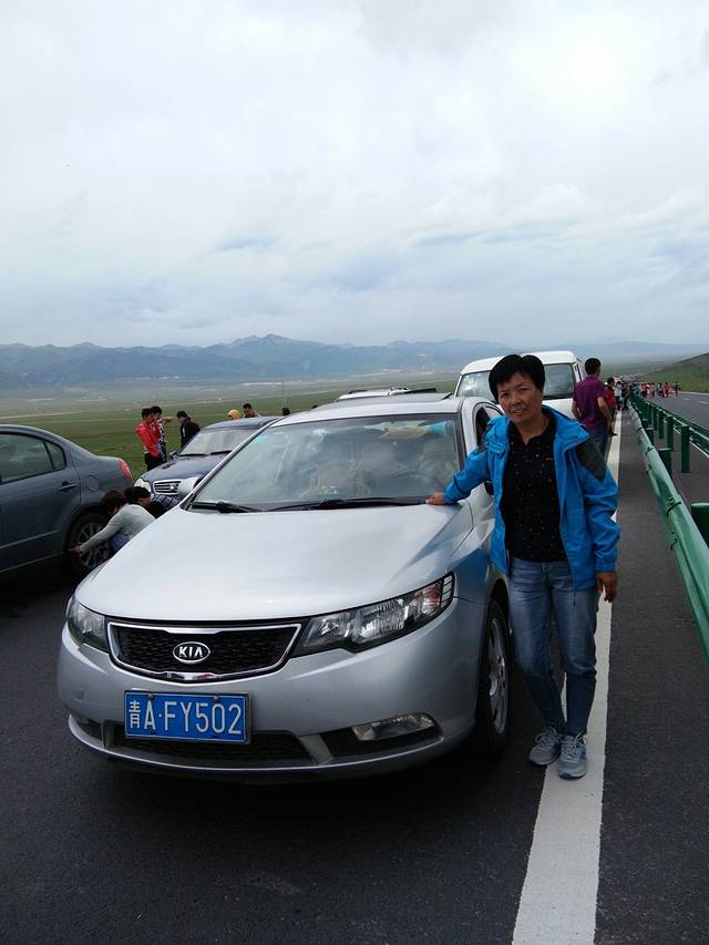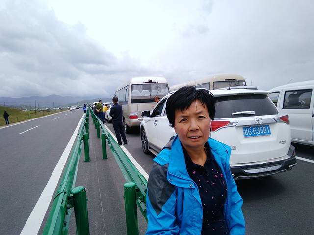 由于青海环湖骑行比赛的交通管制,我们只能被堵在路上,但也是这样,才能让我们好好看看樊姐