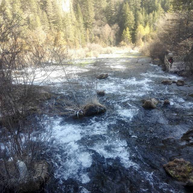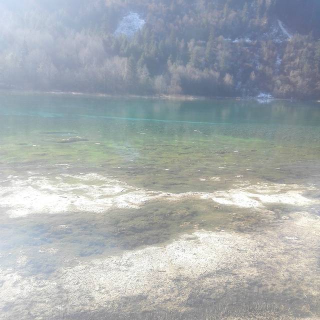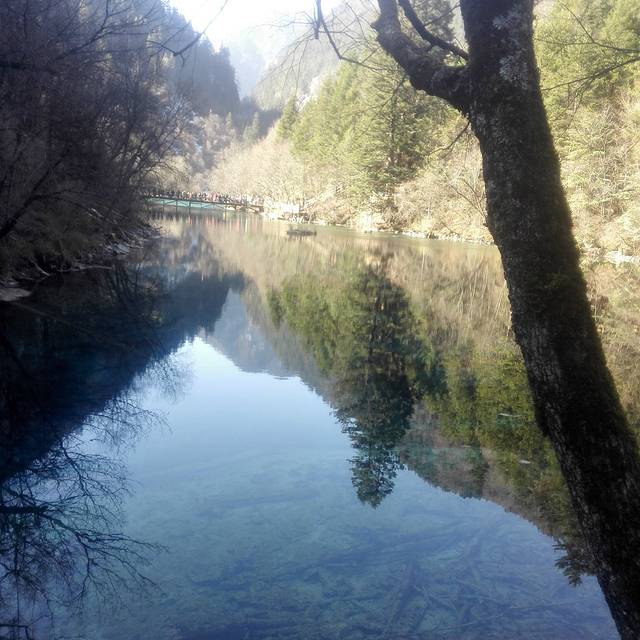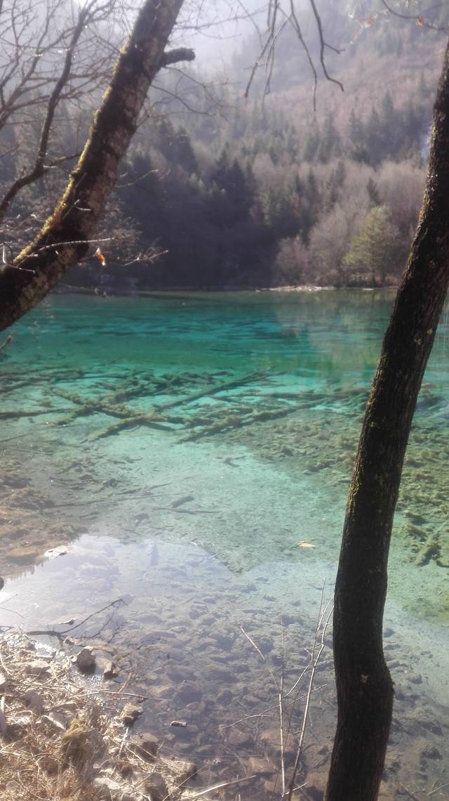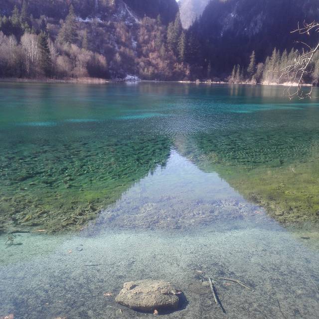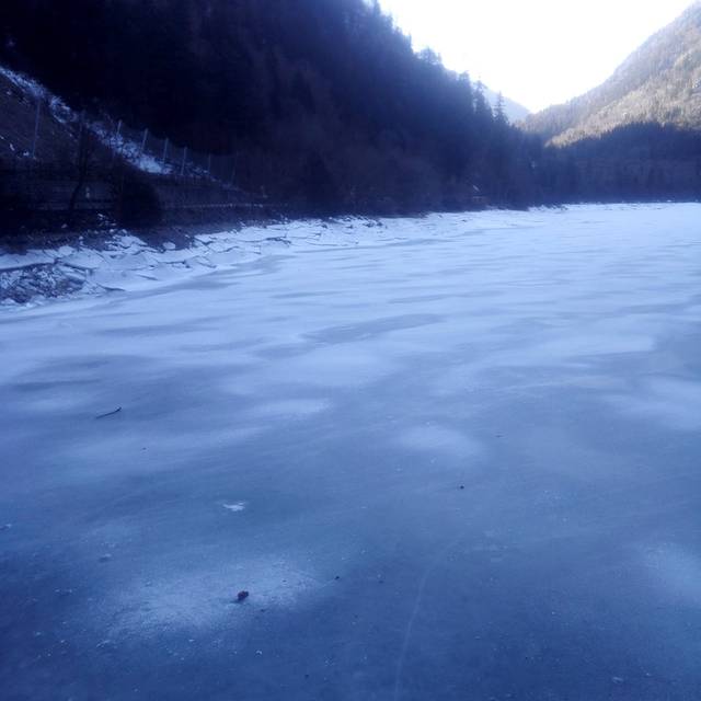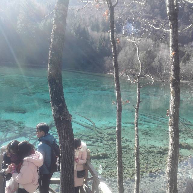 第二天一早,我们便进九寨沟了。即使是淡季,也是有不少的游客,可见九寨沟的魅力之大。乘坐着观光车来到了最高处,我们开始移步观景了,一大早冷的厉害,第一个景点是芳草海,清澈的水能一眼看到水底,整个湖像纯洁的玉一般洁白无瑕,让人心生欢悦。坐车到了第二个景点,箭竹海,这时的太阳已经出来,已然是阳光沐浴,身上少去了刚才的寒冷之意,便可以专注于观景了。
