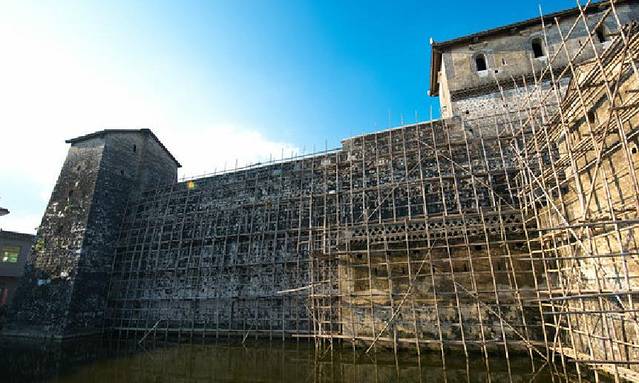 离夏富古村不远的就是石塘古村,开车过去40分钟左右,这是一个让人回味的古村。抵达村子时已是傍晚时分,映入眼帘的第一印象,必定是矗立在村口中央的双峰寨。这座外形略呈长方型,用石灰石以及青砖再用糯米、黄糖、石灰浆砌成建筑,像一个巨型勇士一样,世世代代守护者石塘古村民。可惜的是去的时候刚好在装修,所以看到的并不是很完美,但你还是可进去参观一下的。如果不是跟随熟悉石塘古村的人走访,村内街巷众多,与周边山水、农田相融合,且纵横交错,街巷闸门又错综复杂,一般的陌生人进入村中,很难走得出来。