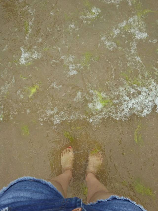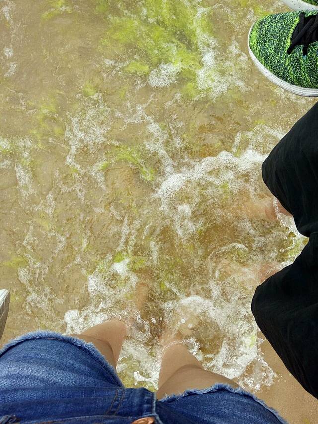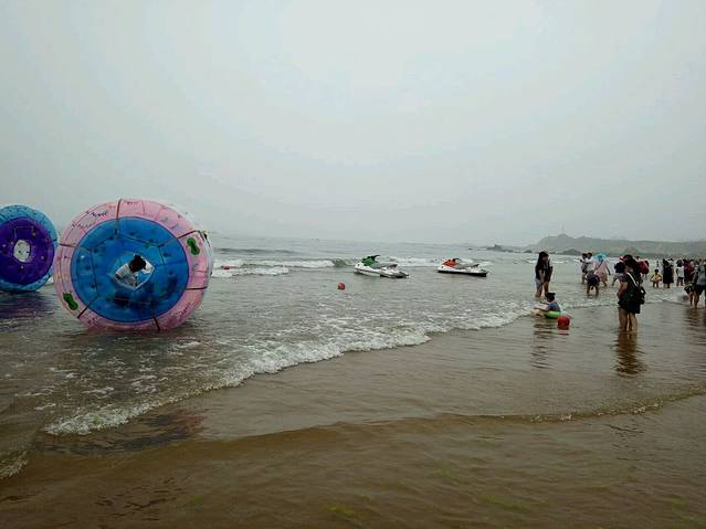 水很清,比青岛市里面的海水干净,去这里要穿越9千多米的海底隧道,隧道里有点黑不过很凉爽,下了公交车再滴滴一下就好了,起步价,很近,海里的海藻特别多,沙子很细,夏天了嘛很多人在海里玩儿