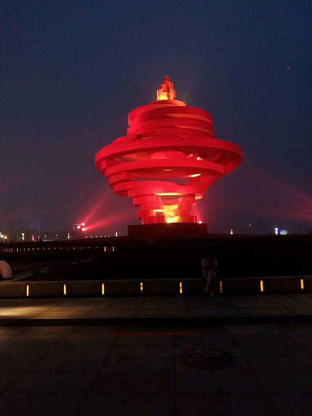 五四广场的标志哇,晚上人很多很漂亮,遇上一群暴走的人们,队伍那是相当的庞大,有兴趣的可以跟着走一圈,或者听听海浪的声音