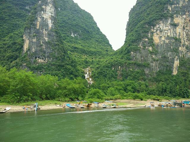 第三天的行程从桂林坐游轮到阳朔,算是这次旅行最经典的项目啦,船票240元,时间4个多小时,感觉一下子就到了,可能是景色太美了,沿途欣赏整个漓江的风景,山水风貌,尽收眼底,似乎是画中游,站在船的甲板上,吹着风,第一次见到这么美的山水风景,手机都舍不得放下来,连坐10次都愿意。到达阳朔后,步行5分钟到酒店,放了行李后,租了台电动车40元,游十里画廊,十里画廊沿途有十里路,两边的景色如画般,故得这个美名。有很多外国人租自行车游玩的,从西街过来,骑电动车来回大概半个小时路程,幸好租了小马哥,不然踩单车以我们的速度来回估计要3,4个小时。十里画廊沿途有5,6个小景点,蝴蝶谷,遇龙河竹筏,月亮岛等。我们骑车到达了遇龙河竹筏的乘坐地点,遇龙河竹筏有3个上船的点,一个是乘坐4个小时,游全程,另一个是乘坐1个小时40分钟,我们乘坐的是游40分钟,上船的地点是水厄底。到达这里已经是6点,竹筏正好下班了,准备明天过来乘坐,先踩好点。晚上回西街,在大师傅啤酒鱼吃的晚饭,晚饭后逛西街,小商品玲琅满目,买了些送给亲戚朋友。