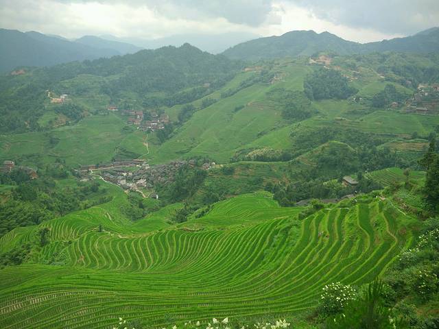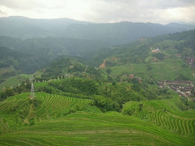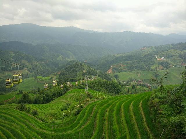 第二天6点多就起床了,今天的行程是游龙胜县的龙脊梯田,路程较远,定了包接送的车,往返车票45元,门票80元,8点半出发,到达时间是11点半,吃了中饭后,司机建议我们坐索道上山,定了当天下午返回桂林市的车,司机送我们到达后,在景点等我们,下午4点半要集合回程,时间很赶,所以建议大家游龙脊梯田,应该在这里睡一晚,山里空气非常好,景点有三个观景台,我们只看了一个,就步行下山了,我们速度很慢,从山顶到山下走了3个小时,正好赶上4点半的车。游3个观景台,最少要预留5个小时的时间。回到市区已经是晚上8点,司机直接送我们到桂林4大餐饮机构之一的小南国,点了招牌菜啤酒鱼,黑叉烧肉,茄子,拔丝芋头,味道还可以,环境好。吃完才看到有团购,还可以9.5折优惠买单。晚饭后,过了马路就是日月双塔景点,步行10分钟就到了正阳步行街,听说当地有6条步行街,最值得逛的就是正阳步行街,每个地方的步行街感觉都差不过,来这里逛建议大家可以在靠近中山大酒店口子那里有个桂林特产之一三花酒老店,第一是品牌连锁店,开了20年,第二不会买到假酒。这家店铺只在桂林看到了,阳朔没看到,作为特产送人还是不错的,还有当地的金顺昌特产店可以买些桂花酥和桂花糕送朋友。不要到路边的特产小店去买,听当地人说会被杀猪。我们回来的时候在特产小店买了绿色大芒果,标价3元一斤,5个价格49元,结果回来称只有26元,这也太破环桂林的市容市貌啦,少称少了一半。