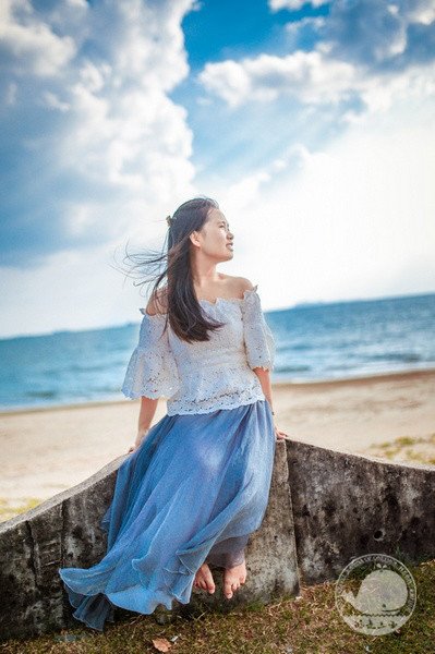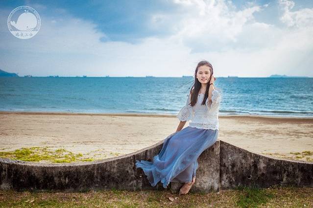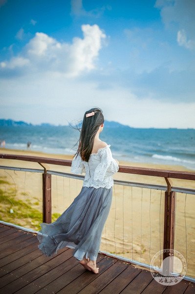 这是我从没见过的蔚蓝的大海,放眼望去,海天之间,只有一线之隔,就真如一幅会动的画一样,美到不真实。海浪用力的拍打着礁石,巨大的潮声在我心里回档,海风强劲,刘海飘飘,裙袂飞扬。