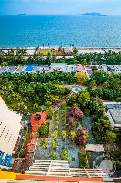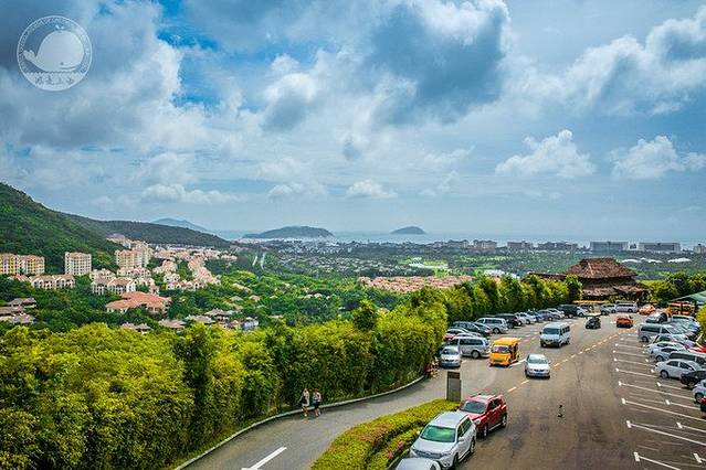 亚龙湾热带天堂森林公园的出名是因为拍摄了《非诚勿扰2》电影,还有一个出名的就是呀诺达热带森林公园,两个地二选一即可,因为神往远眺亚龙湾的海景和《非诚勿扰》中舒淇走的索龙桥,所以我们选了前者。很多大明星都来过,进口一路有各种宣传照,而公园里还有个鸟巢度假酒店,接送游客的车都是路虎,可霸气了,心升“求带上我”的心声ヾ(≧O≦)〃 这是入口处(半山腰)回望山下。