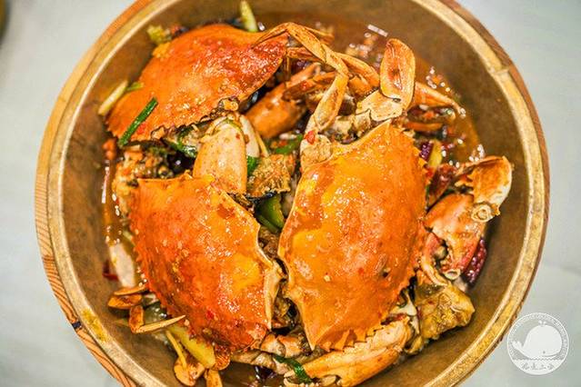 致我最爱的海南四大名菜和乐蟹!,欧耶~这个就是他们家的招牌菜,香辣和乐蟹,简直色香味俱全( *︾▽︾) 也就是在这里吃了这种做法,我才得出和乐蟹不建议清蒸的结论,当然,还是得看厨师水平的哈,这家真的做到我心里去了呢。吃着呢,阿邦竟然跟老板攀谈起来,看来真的是常客