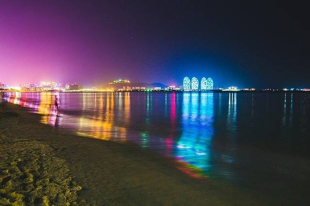马路对面的夜排挡渐渐开张,咖啡馆的霓虹灯一盏盏的点亮,夜的喧嚣,喜欢这种氛围。停下车,在距离凤凰岛很近的一处沙滩上逗留了一会。三亚凤凰岛这么壕的地方我就不多说了,脚踩沙滩,隔着海张望一下就好了>_<