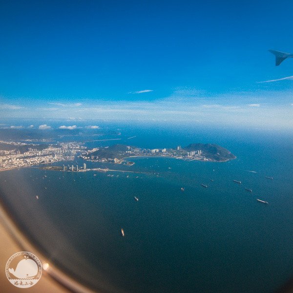 今次飞机飞的好平稳,看着窗外天气越来越好温度越来越热,于是我们每过半个小时就脱一件衣服。当飞机到三亚上空重新回落到云层下时,略过南海观音的上空,整个机舱都发出了惊叹,可惜不在我这边,喵了一眼,没及时拍下来,小遗憾。随手抓拍的景色也足以让我折服。