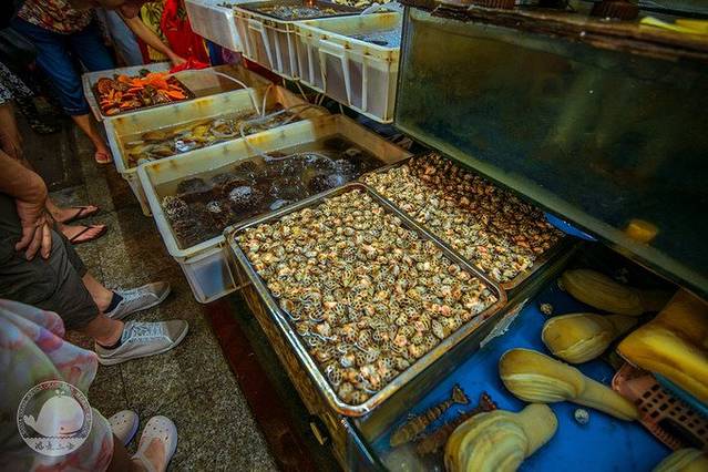 这个时间点最好的去处自然是夜排档咯,第一市场附近的海鲜加工店也就营业到第一市场关门(晚上7点),没有海鲜卖的,自然就没法加工咯。所以夜宵还的是夜不眠的地方,春园海鲜市场营业到午夜,还有就是附近几步路的乐程啤酒广场,各种海鲜夜排挡,随便挑选。因为提前接到老爸的电话,家里给我留了夜宵(他们晚饭吃不完的剩菜>_<),所以我们差点没坐下开吃,哈哈哈哈,路过看看咯,都是明码标价的,价格不算便宜,但也都消费得起,所以不用担心。
