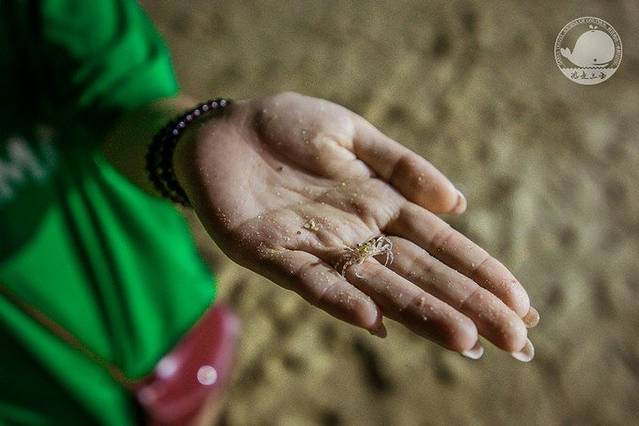 小螃蟹不是时刻都有的哦,大家记得算准潮汐。到海潮退到低谷或者正准备从低谷涨回来的时候,沙滩上的螃蟹特别多!因为螃蟹的巢穴基本都在挖在沙滩的下边(接近海水),涨潮回来就会被海水没过,退去的时候就各种出来活动。小东西灵活的很,不过依旧逃不过我的妙手^^