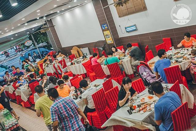 我们买完海鲜可以回去自己烧,而大多数的游客,买完海鲜会就近去海鲜加工店加工,这也是第一市场的一大特色,周围布满了海鲜加工店,已经形成规模,来料加工收取加工费的经营模式已经比较成熟。而且只加工不卖海鲜的店就不用担心偷梁换柱,把活的换成死的了。