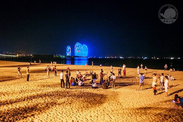 呃…额外说一些,三亚本地的娱乐文化相对还不那么时尚,因为一个晚上遍地听到的音乐,广场舞播的,酒吧夜排档放的,还有这种卖唱的,似乎都是一些比较老旧的歌曲。这个沙滩上弹唱的人,一首王力宏的大城小爱已经是今晚听过来排名前三的歌了(o゜▽゜)o☆