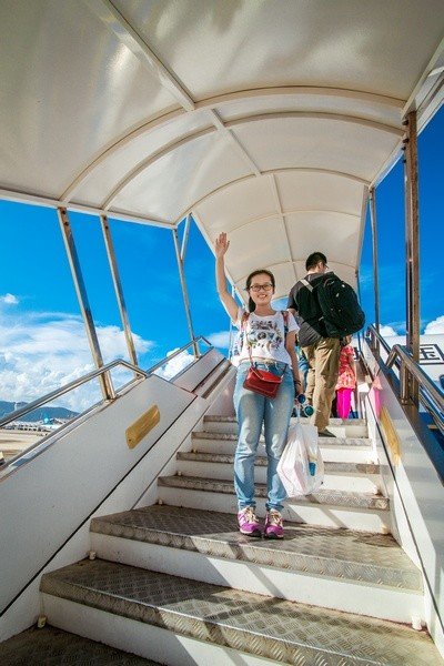 海洋之星是一座巨大的岩石山,缆车到站下车就可以沿着石阶往上走,爬山这种事,姑娘们肯定会讨厌,所以我这里给大家打个预防针,也就百米不到的脚程,一点也不累,而且从下往上看就立即能明白这绝逼是一个角度极佳的观景平台,登顶,回眸,心一下子被点亮!