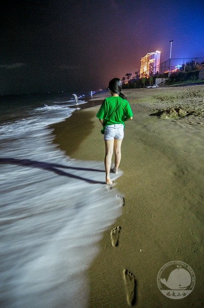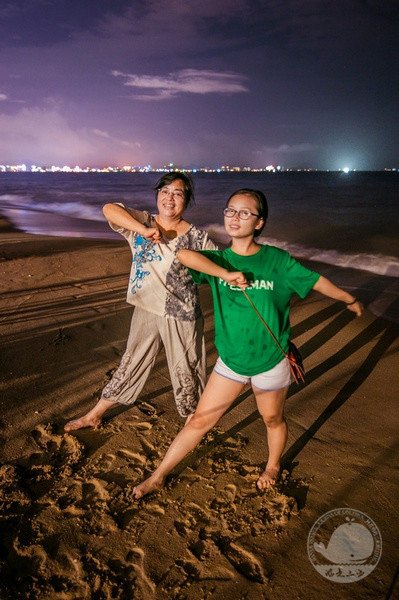 最后的夜晚啦,再不踩几脚中国最美的沙滩,下次就不知道什么时候啦。夜色笼罩,我们一行五人又齐刷刷的走在了三亚湾的沙滩上,任由海水抽走我们脚步下的泥沙,享受海水拍打小腿时的凉爽。萌萌的阿姨跟我玩起了潮型,惊艳全场*★,°*:.☆\( ̄▽ ̄)/$:*.°★*