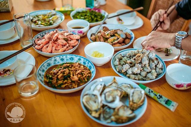 虽然下馆子点几个爆炒的海鲜味道可能很浓郁,不过餐餐都这么吃也多少有点油腻,更缺失了海鲜原汁原味的味道;自家白灼或者清蒸,最大程度的保留了海产品最地道的味儿,鱼肉的细嫩,海螺的鲜美,还有梭子蟹似乎可以尝到大海的味道。再来一小盅小糊涂仙,哇哈哈哈,我不会喝酒~捂脸( *︾▽︾)