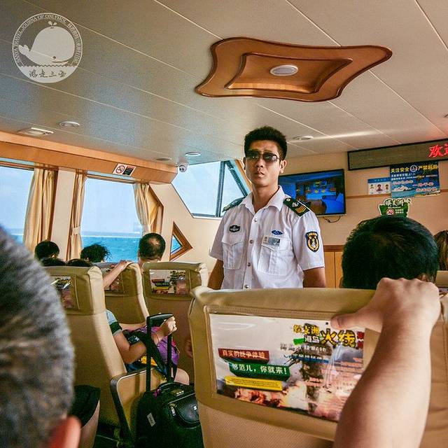 今天的风有点大,因此海浪也是,全船都比较的颠簸,建议带点晕船药,虽然只有15-20分钟,但是碰上大风浪着实有点难受的。我们的船长是个皮肤黝黑的帅船长,被我拍惨了,抱歉~