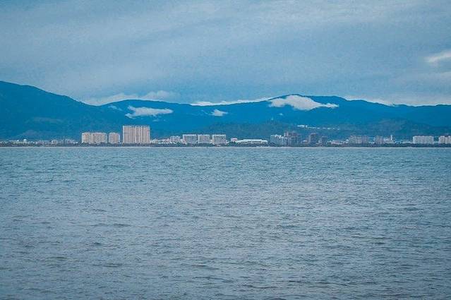 西岛的水上娱乐项目跟蜈支洲岛上是基本一样的,不过价格便宜不少,携程上团购一价畅玩是790,门票、船票、娱乐项目全部都包含在里面了。所以从性价比考虑的话,西岛是第一选择,连房东小郑也是推荐我们要玩水上娱乐项目的话,选西岛。其实对于一个常住在三亚的人来说,反正也习惯了海边的风景,自然推荐更具性价比的。站在西岛上,近处是看到有人在玩拖伞,远处对面就是三亚湾,貌似还可以看到我们的住房~