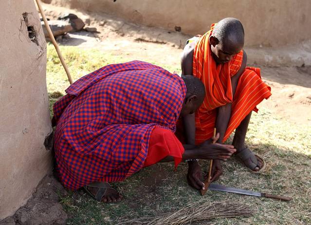 马赛人的钻木取火表演